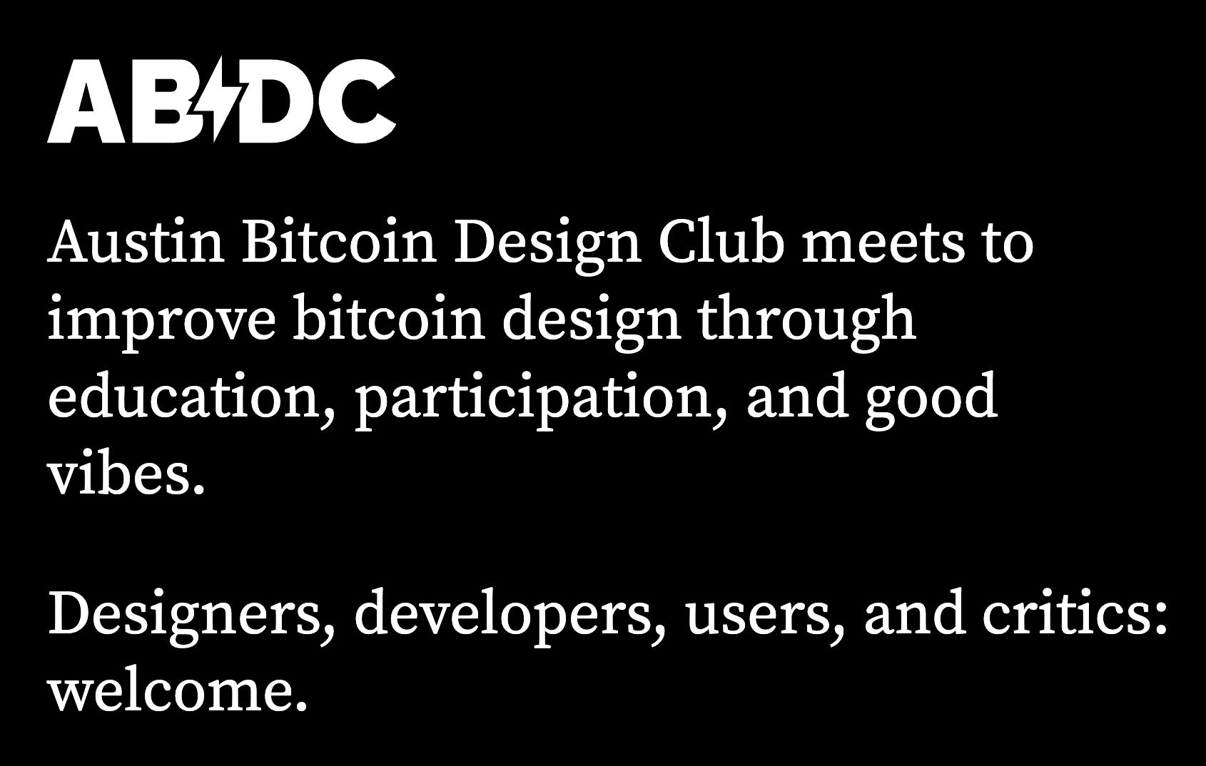 The goal of Austin Bitcoin Design Club is to assist the local and the greater bitcoin community with design help.