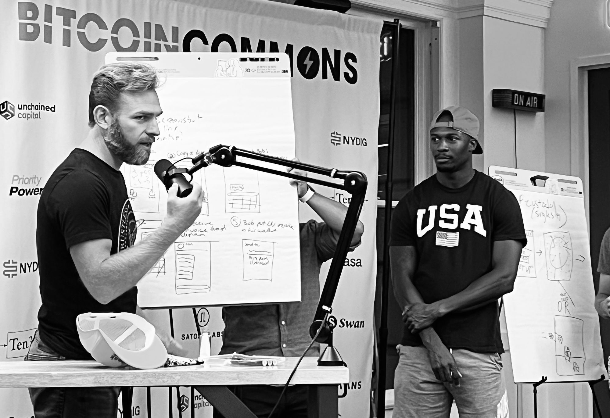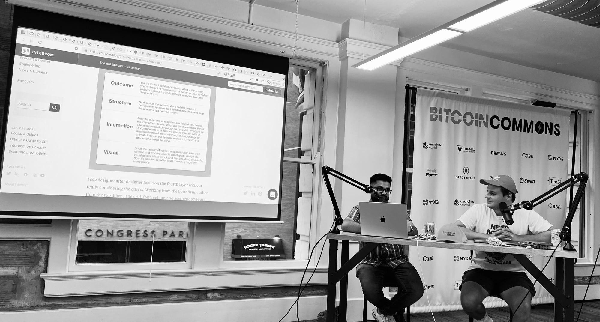 The genesis meetup started with everyone introducing themselves. After the introductions both Paul and Sahil kicked off with design news covering everything from fonts, figma to the "dark yellow problem” in design system color palettes. The best part of the meetup was the hands on workshop. A group of 5 individuals all created a team to solve a design problem in bitcoin. Each group worked together to build a flow, concept or app on how the problem could be fixed. They even jammed their own AB⚡️DC Spotify curated playlist during the event. 🔥vibes