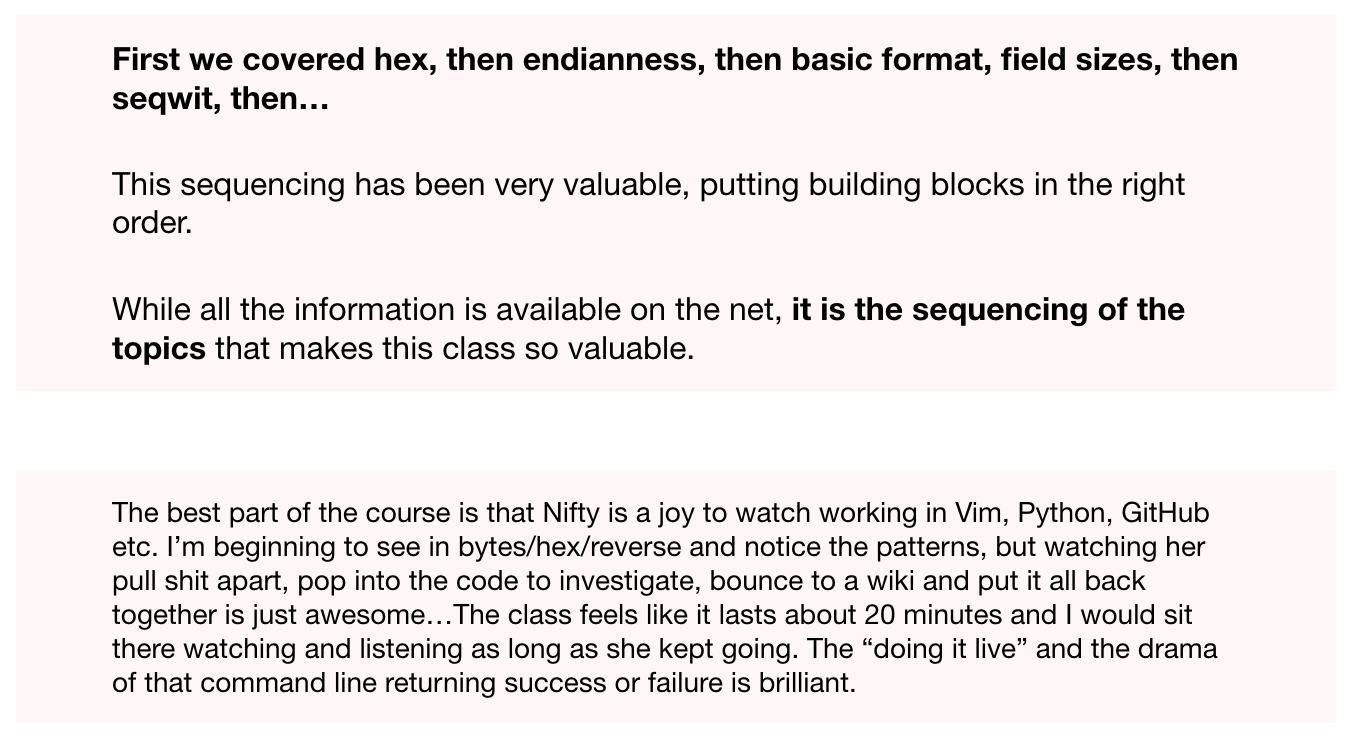 Our friends @niftynei and @stakamoto21 have just released their second 6-week developer-oriented bitcoin transactions class which will take you from zero to blockchain hero in no time.