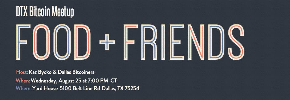 The first event of the week is kicking off Wednesday Night, headed up by the DTX Bitcoiners. They have been hosting some amazing meetups in Dallas & Fort Worth for Bitcoiners since February and from what I can gather they put on an amazing time with real Dallas BBQ. Sign uphere.