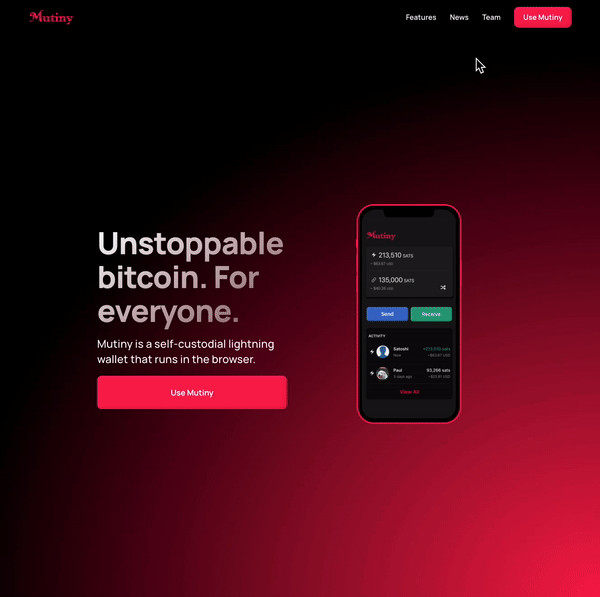 Mutiny Wallet has emerged as a beacon of hope in the browser. Unsurprisingly, the mission-driven team is meticulously constructing every element from the ground up, safeguarding user privacy and making the necessary tradeoffs for a secure user experience.