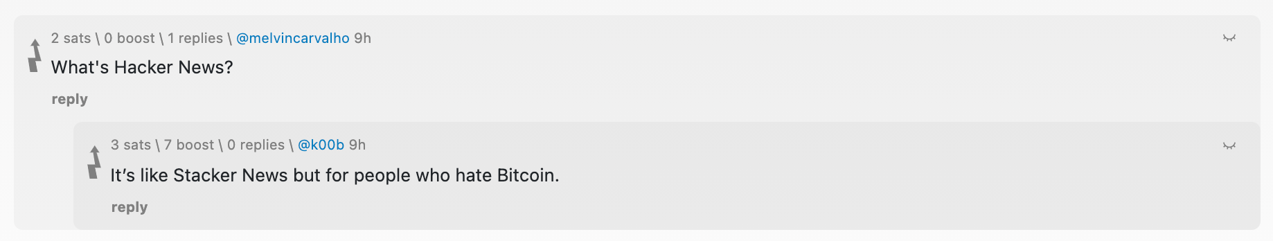 What is Hacker.News? Like most Bitcoiners k00b said it best on Stacker.News