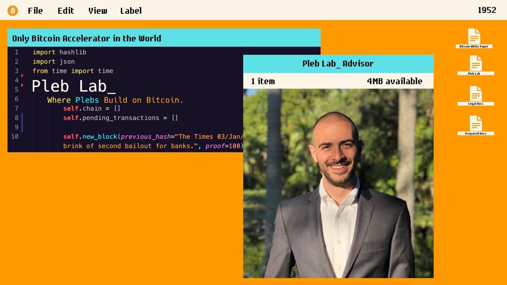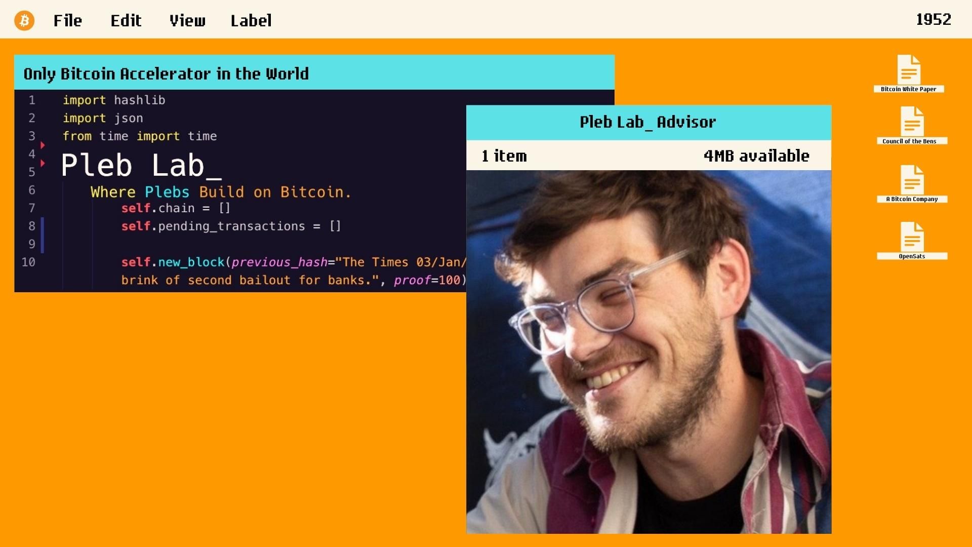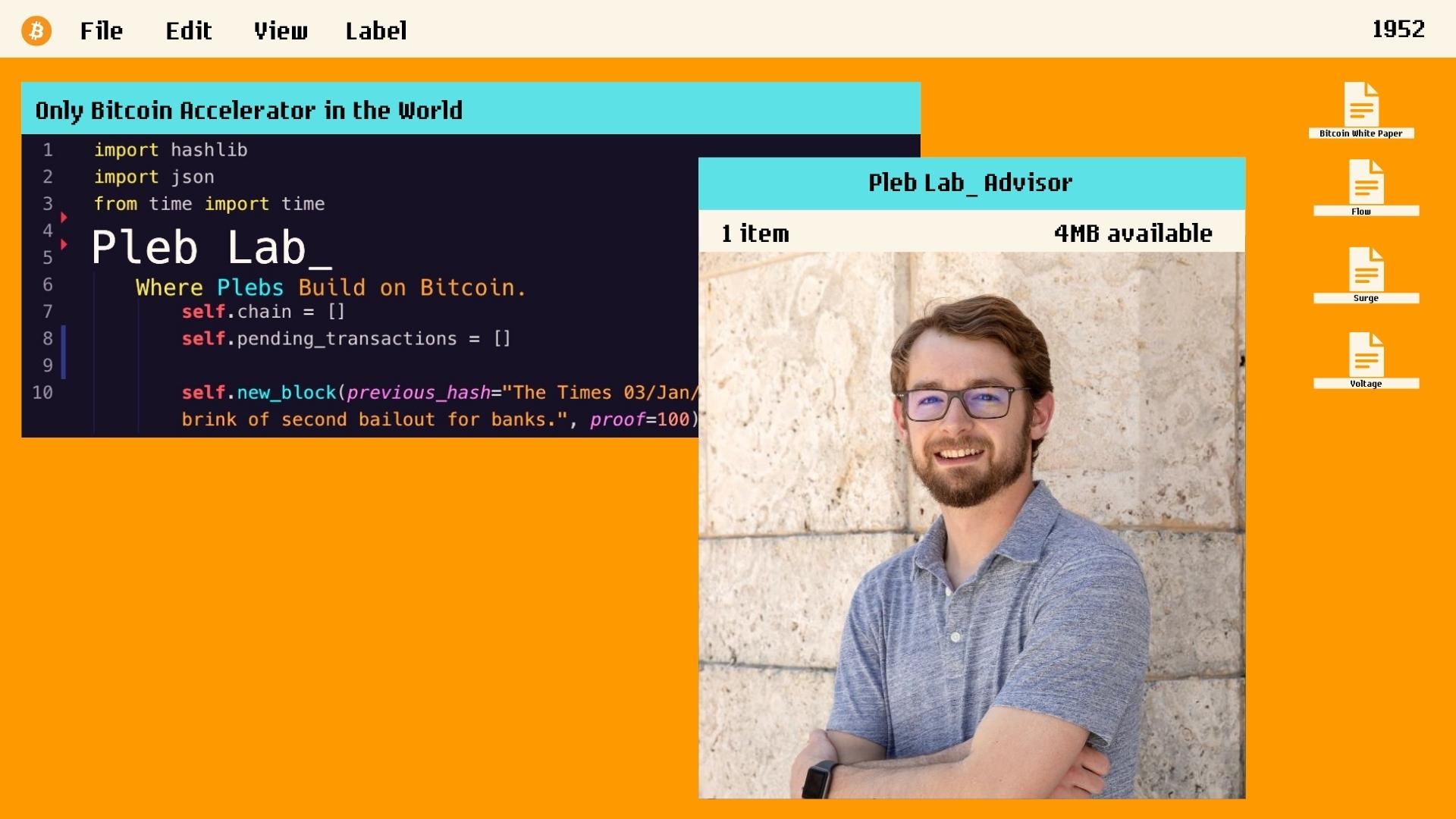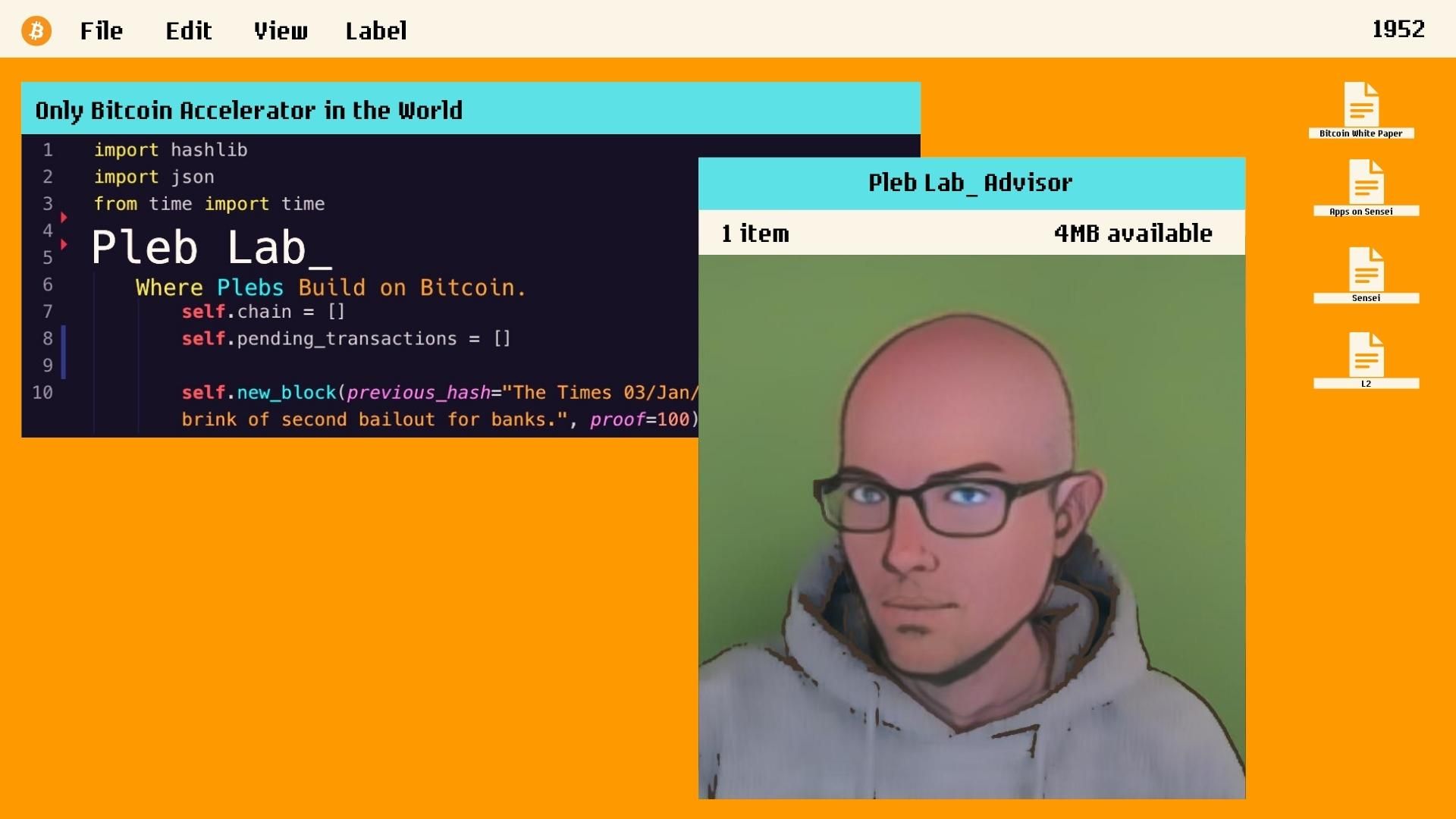 Local Bitcoin hacker group assembles advisors for the Worlds Only Bitcoin Accelerator. This was released into Bitcoin Twitter this past week. The final three announcements were made today.