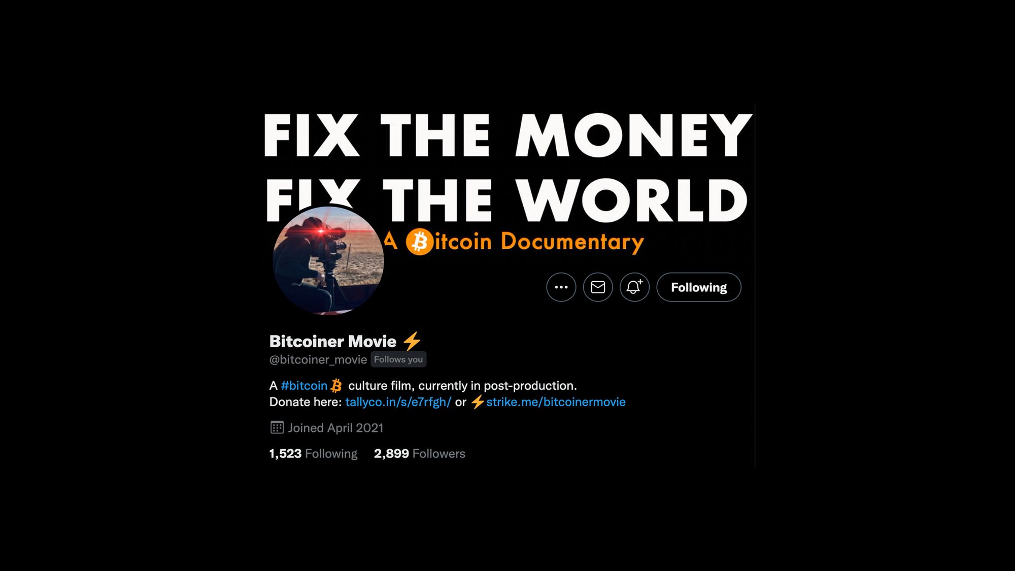 Sat donations would be helpful to the crew as they try to finish the movie on time. @bitcoiner_movie began shooting this documentary around Bitcoin 2021 conference, in Miami. We have seen Bitcoin adoption and Bitcoin meetups grow exponentially especially with communities and small towns across the world. So expect the documentary to cover everything that happened in such a short amount of time this past year.