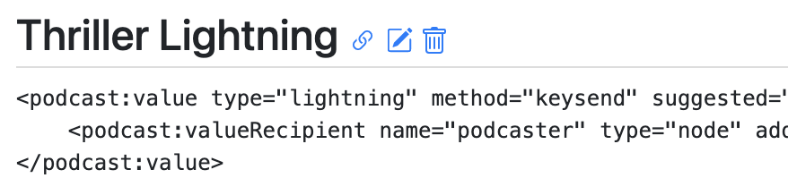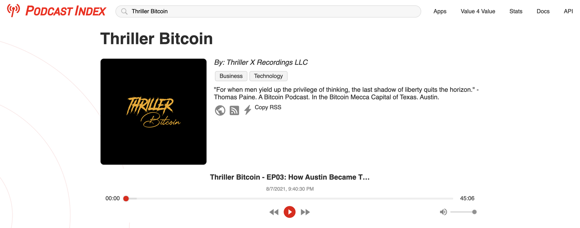 The cool thing is if you go back to Podcast Index and now search for your podcast again it will now say the following, "Value for Value via Lightning."