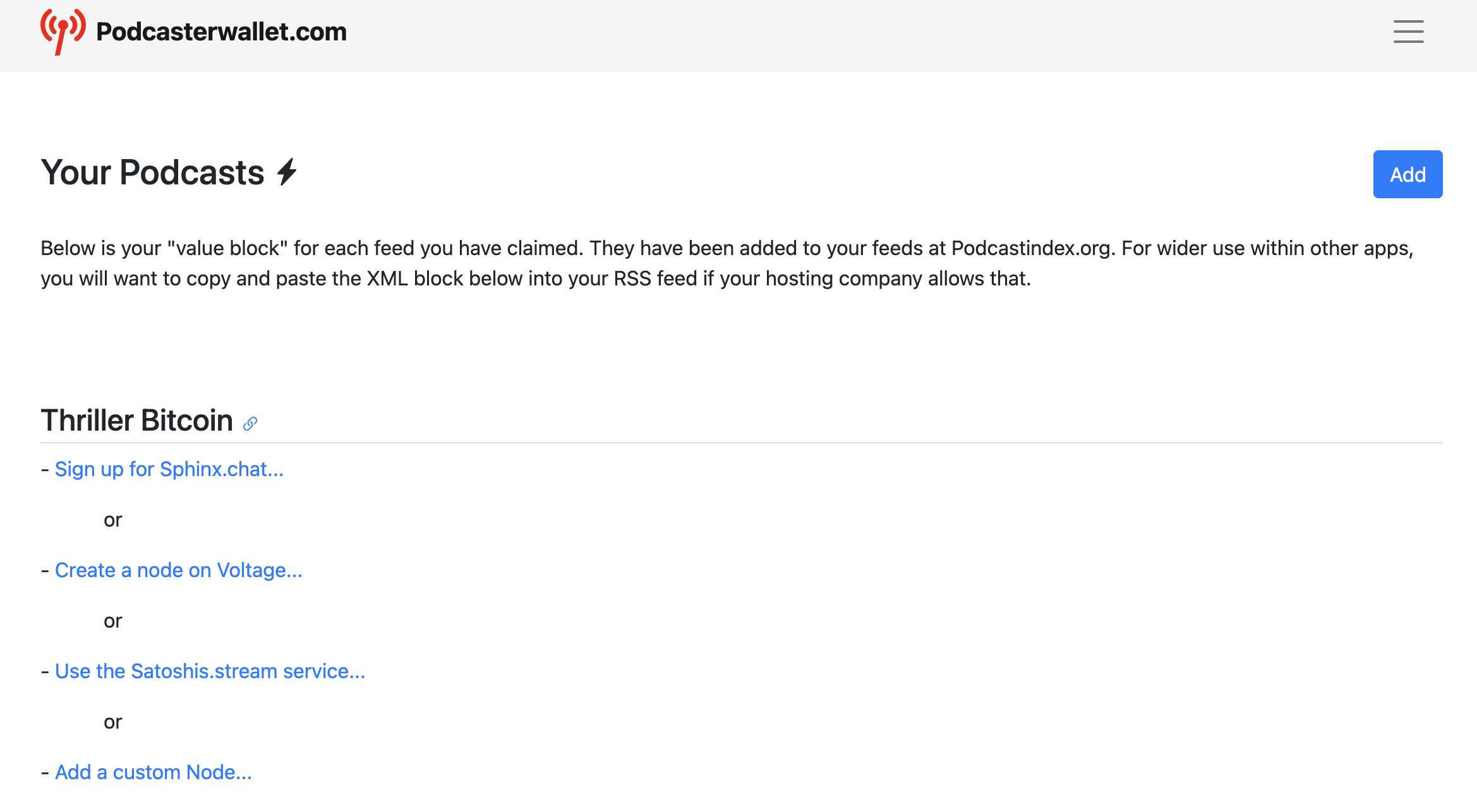 Once you are all done with this you are ready to began the process of setting up your Podcast with Lightning Payments.