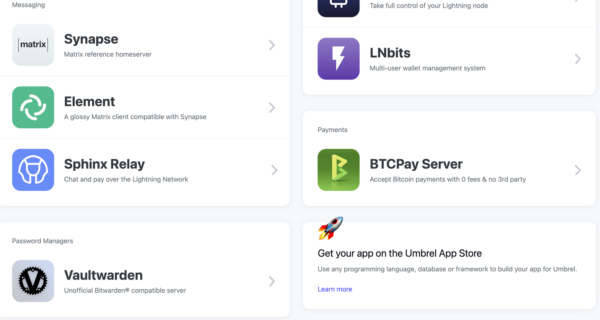 Now head over to the App Store on your Umbrel Lightning Node. Install Sphinx Relay.
