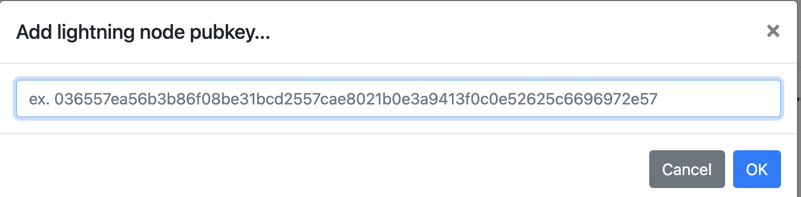 Go ahead and paste that back over in PodcasterWallet.com and click on Add a custom Node... Paste that Lightning Node public key you just copied from your Sphinx Chat app.