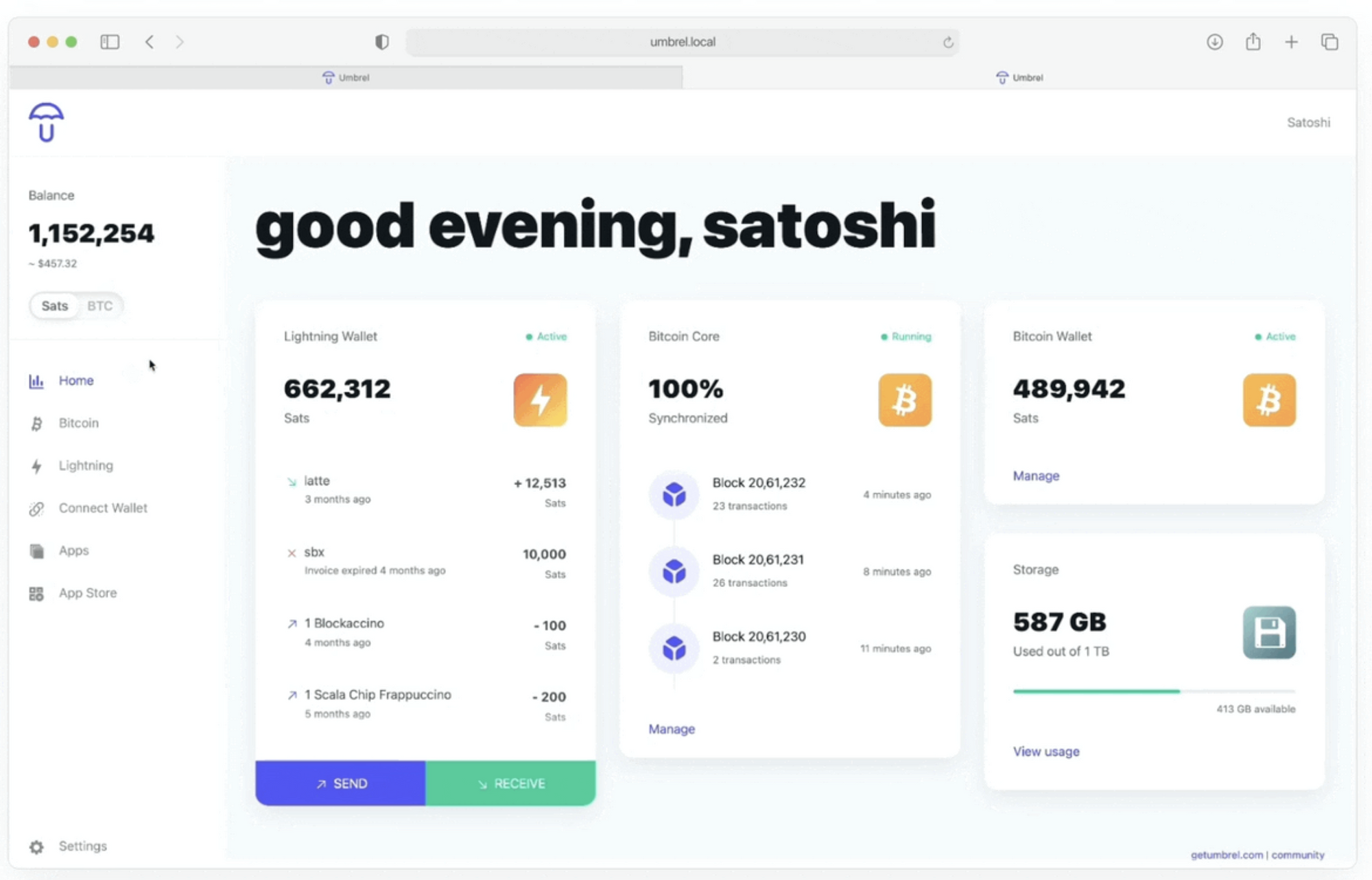 Obviously we are using Umbrel's latest release Umbrel 0.4 — "A Personal Server OS for Everyone,"as our Lightning OS. I chose this one because most podcasters will be able to understand it right out of the box. Umbrel makes everything really easy. The user interface is so beautiful and quite wonderful to use.