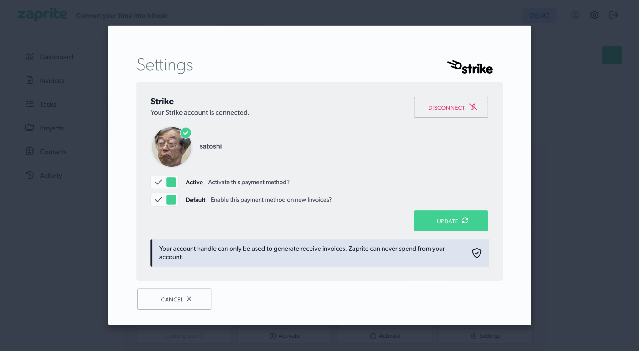 If everything wasn't already perfect. Zaprite has now added the ability to connect your Strike handle and receive all payments directly into your Strike account.